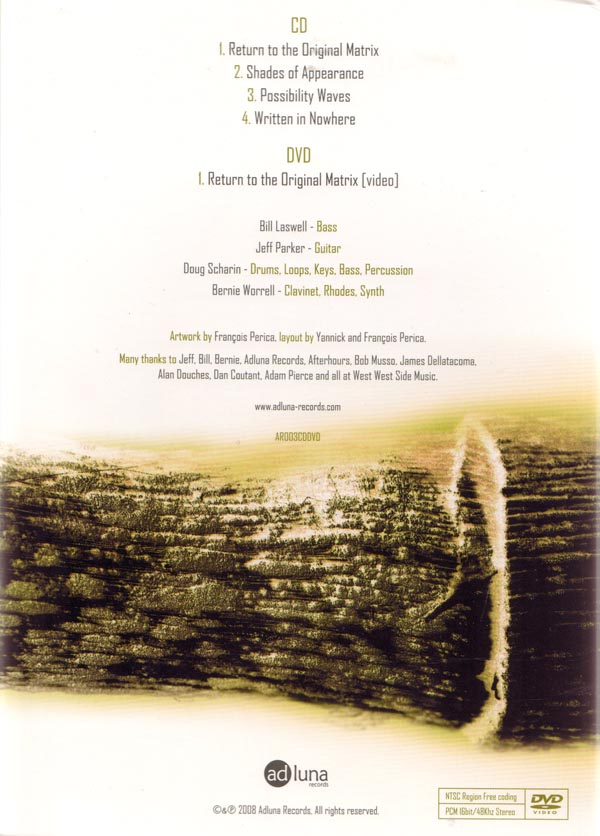 Sadly, the less said about the video accompanying the release, the better. The DVD contains a treatment for “Return to the Original Matrix” that's hopelessly dated and frankly crude, and the heavily saturated colour-manipulated treatments of bridge structures, natural landscapes, and geometric patterns used as accompaniment to the eleven-minute track would have been dismissed as cheesy as far back as 1982. One thought kept continually coming to mind while I watched it: why not simply show the four musicians playing the material live? Footage of Laswell, Worrell, Parker, and Scharin interacting would be a whole lot more engrossing than a non-narrative stream of images and patterns. Though it is a beautifully designed package, ignore the DVD—it's a bonus, anyway—and focus on the music which holds up well enough on its own, all things considered.