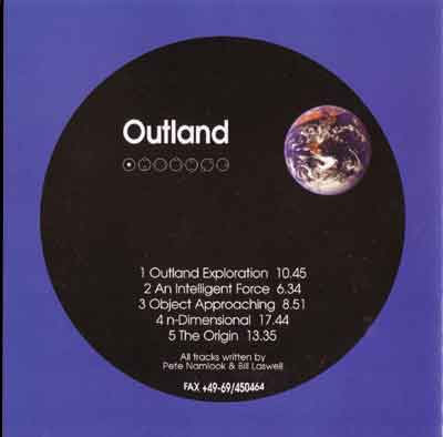 Outland Exploration starts out calmly, with vocal samples reminiscent of Subharmonic Interference and some live bass playing by Laswell. Object Approaching and n-Dimensional are the ones that put me off first. But they do have something, coming across like scifi-movie soundtracks overlaid with a treated drumbeat. The first track ends with a few sombre bass notes, giving it even more of a scifi feel. My only gripe is that they sound too much the same, and therefore take up too much of this disc. After 25 minutes of this, The Origin comes as a welcome breather. It starts with treated muezzin voices (I guess) and turns into a beautiful tune, a floating synth-organ bathed in echo. The last track combines (untreated) drum beat, muezzin voices and live bass playing -- upping the tempo from the previous track but retaining the relaxed atmosphere.