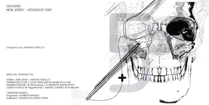 There's a radical choice for a dark-developing electro-sonnet style in Outland 5, propelling ambiances and charismatic deep essences into a cumulous arrangement of sounds, electric melodies, thunderous energies or cloudy brushes. Namlook and Laswell work through a lot of sounds and scales, on a low-spotted variety of emotions, plus on a gale of abstract smokes and morphs, elementary and modern, but significant and bright. The album is made out of heavy techno-tones, vertebrating a contemporary taste for electronic sequences or dances, but there's a great figure of speech when saying Outland 5 is "frighteningly strong" and "imposingly clutching". Soundscapes (uncommon, in a way), vocal samples, smidges of effects or (neo-)electro-waves break into the mind of the listener, the beats of the sound reflecting the beats of the heart. This electronic experiment has an outlandish character, without forgetting though its torrentially technical or discretely emotive pulse. Corseted inside a very good to hear technique and sense of arrangement, this product is beyond expectations - or just ghastly exciting.