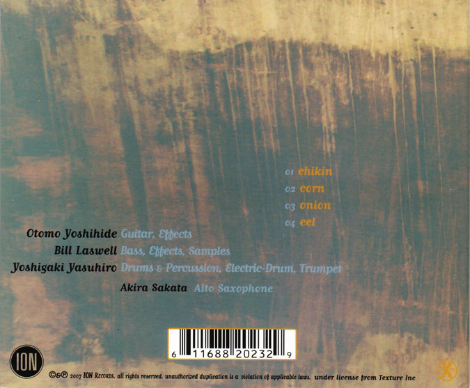 Otomo Yoshihide: guitar, effects; Bill Laswell: bass, effects, samples; Yoshigaki Yasuhiro: drums, percussion,