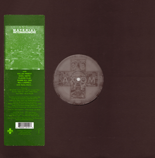 Things sure have changed since Material (then a trio consisting of bassist/producer Bill Laswell, drummer Fred Maher and keyboardist Michael Beinhorn) released its first EP of mildly abrasive experimental art-funk in 1979. These days Beinhorn and Maher are out of the picture, and Material is just a name that Laswell gives once and a while to one of his many collaborative projects. This time out, Material is Laswell and a motley crew of rappers and DJs. The disc package is emblazoned with the defiant slogan "Rapping is still an art, " which tends to raise one's expectations somewhat. Those expectations are more or less borne out, too. As is his wont, Laswell provides instrumental settings that are dark, rhyhmically complex and bone-shakingly bass-heavy; on top of his foundational beats there are expert turntable manipulation from the likes of DXT (known to old school aficionados as Grandmaster D.ST) and phonosycographDISK, rapping by Ramm Ell Zee, Scotty Hard, Killah Priest, Flavor Flav and others, and even a cameo appearance by wispy-voiced art-pop singer Lori Carson (whose "All That Future, " a collaboration with funky keyboard legend Bernie Worrell, turns out to be one of the album's highlights). Flavor Flav is his typical off-the-wall self on "Burnin'", while Killah Priest gets arrythmically serious on the six-minute recitation "Temple of the Mental." Alicia Blue provides the aptly titled "Flo w, " and Kool Keith weighs in with "Conspiracies, " a lyrical theme that keeps returning throughout the album. The only weak point on the album comes, unfortunately, at the very end, with Ramm Ell Zee's obnoxious and stupid "Hisstory." Highly recommended overall.