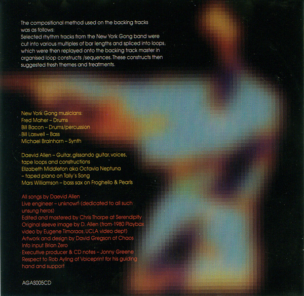 Daevid Allen: guitar, glissando guitar, voices, tape loops and constructions;