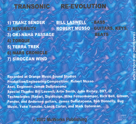 Robert Musso: guitars, keys, beats; Bill Laswell: bass.