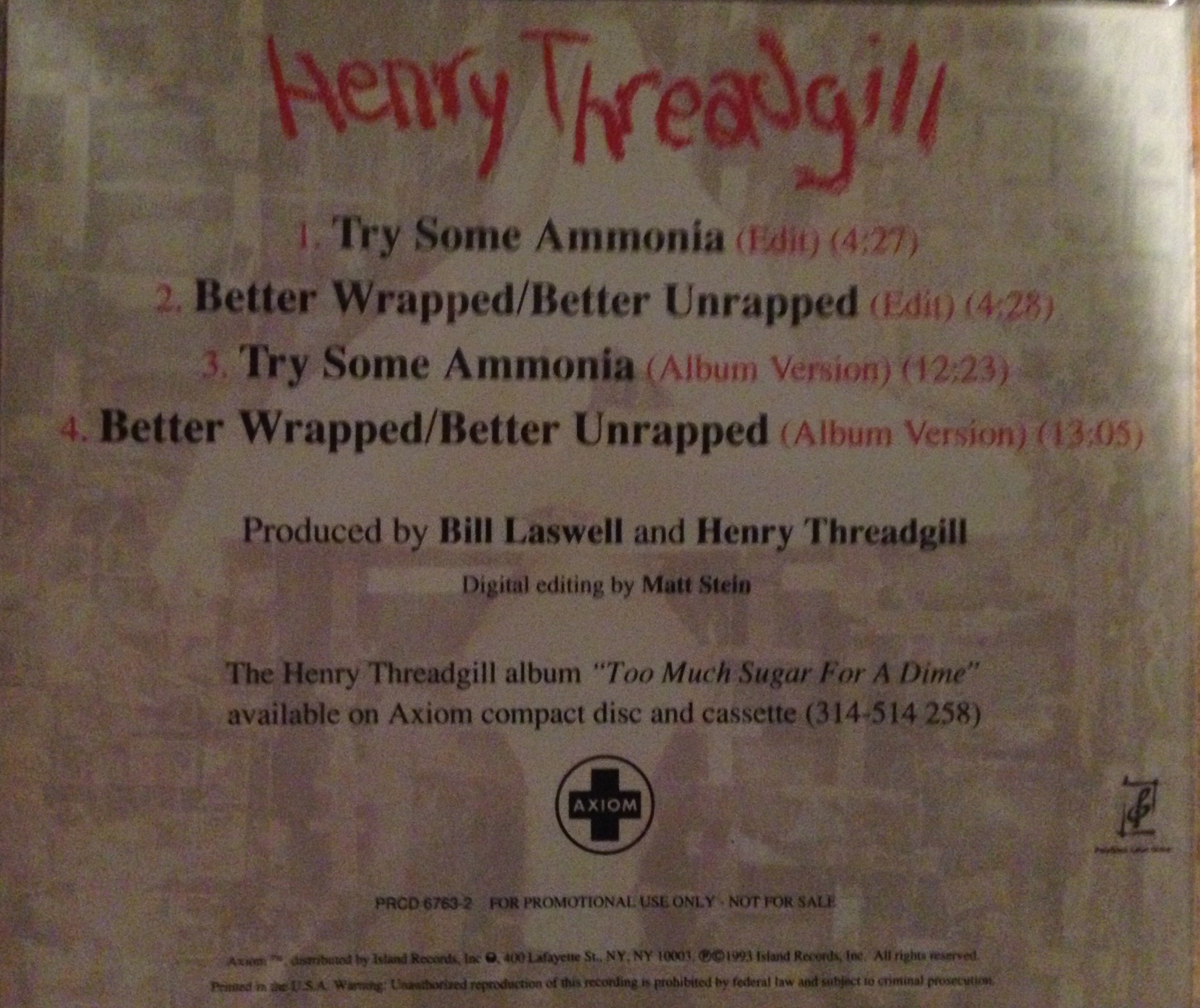 1993 - Axiom/Island (USA), PRCD 6763-2 (CD single)